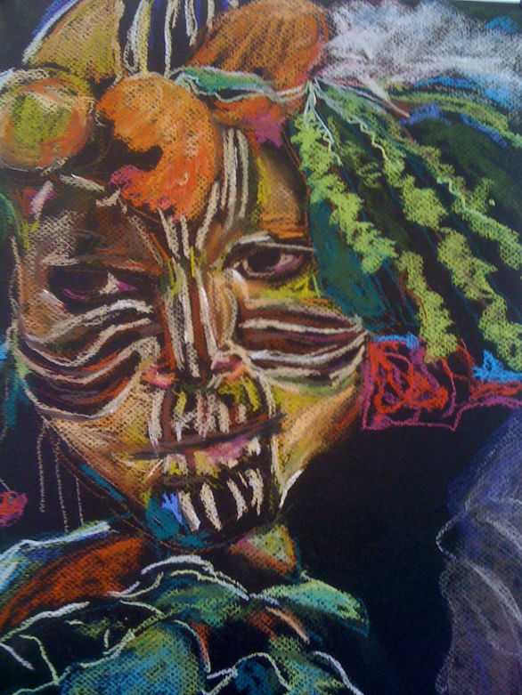 Back in the studio I found photo of people from the Omo River in Ethiopia who decorate themselves with nature, their own bodies becoming works of art. Memories of my many trips to Africa and the sophistication of these tribal cultures came back to me.